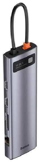 Baseus Type-C HUB 11in1 (aktív, 3 USB+Type-C+RJ45+2 HDMI+VGA+3.5mm jack, SD/microSD kártyolvasó) SÖTÉTSZÜRKE