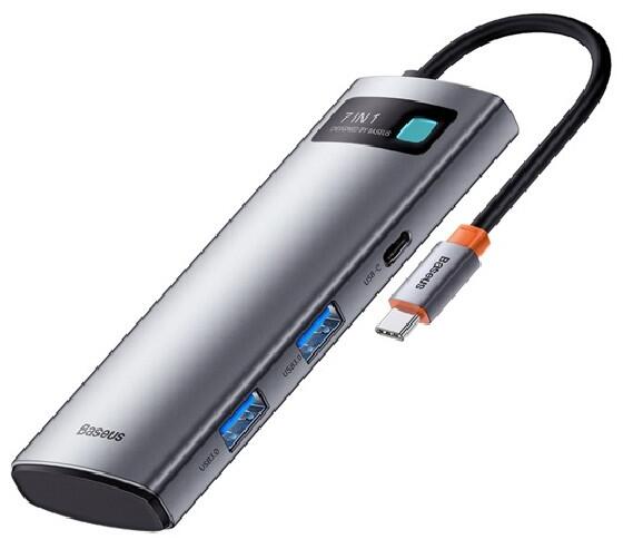 Baseus Type-C HUB 7in1 (aktív, elosztó, 2 USB+2 Type-C+HDMI 4K aljzat, SD/microSD kártyaolvasó) VILÁGOSSZÜRKE