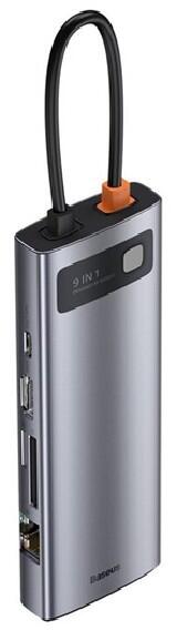 Baseus Type-C HUB 9in1 elosztó 3 USB port Type-C csatlakozó RJ45 Ethernet port HDMI 4K kimenet VGA aljzat SD/microSD kártyaolvasó