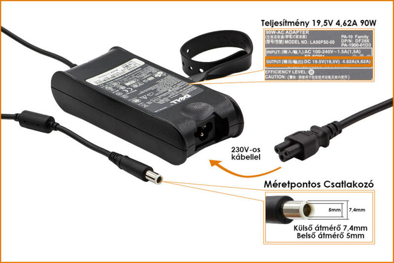 eMAG termék név Dell PA-10 19.5V 4.62A 90W gyári új töltő (9T215, PA-1900-02D2)