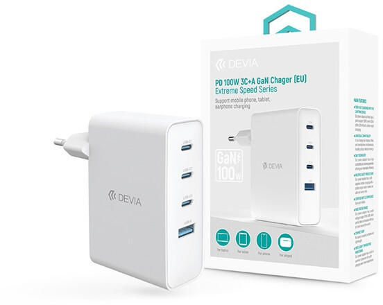 Devia Extreme Speed Series 100W GaN PD hálózati gyorstöltő adapter USB+3xType-C - fehér (ST121430) - compzone