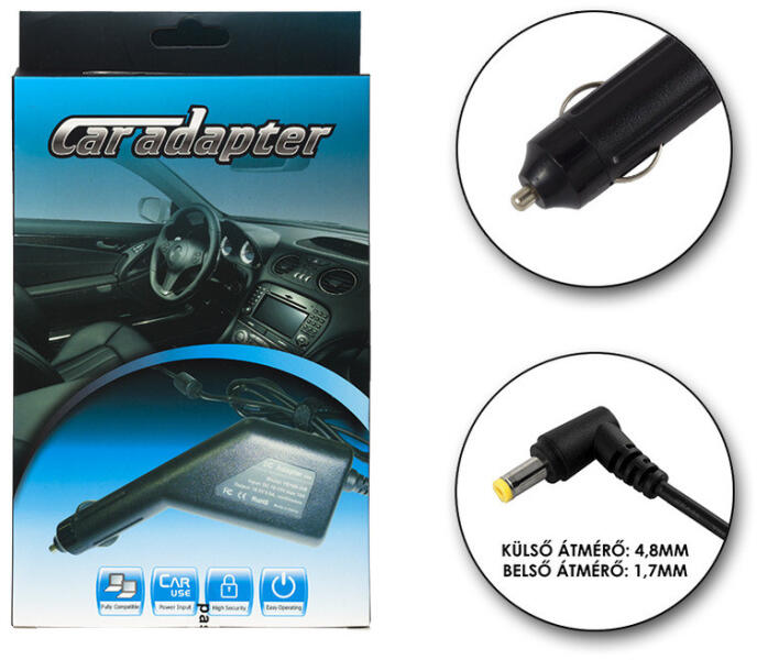 Laptophardware HP 19V 1.58A 30W (4.8mm/1mm) helyettesítő új autós netbook töltő