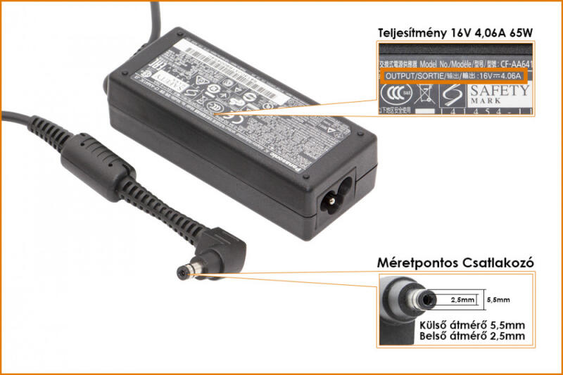 eMAG termék név | Panasonic 16V 4.06A 65W gyári új töltő (CF-AA6413C) |