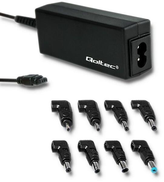 Termék típusaHálózati tápegységCsatlakozó típusaAC töltőTovábbi információkRendeltetési hely; Notebook, LCD képernyőcsatlakozó: 8 db.  Modern, nagy hatékonyságú Qoltec AC univerzális adapter laptophoz. Otthoni és munkahelyi élményt nyújt, elsődleges vagy tartalék tápegységként. Biztonság: túlfeszültség, túlterhelés, rövidzárlat és túlmelegedés elleni védelem. Az alacsony energiafogyasztás és a magas hatásfok jellemzi. A csomag tartalmaz: töltőt, tápkábelt és 8 csatlakozót, így több eszközhöz is illeszthető, mint például:19V | 2.5 x 0.7 | ASUS19V | 3.0 x 1.0 | ASUS. SAMSUNG19V | 4.0 x 1.35 | ASUS20V | 4.0 x 1.7 | TOSHIBA, LENOVO19V | 5.5 x 1.7 | ACER20V | 5.5 x 2.5 | TOSHIBA, LENOVO, LG, MSI19V | 5.5 x 3.0 | SAMSUNG19.5V | 6.5 x 4.4 | SONY, LGSzínFeketeTeljesítmény45 WKimenet2.37 A