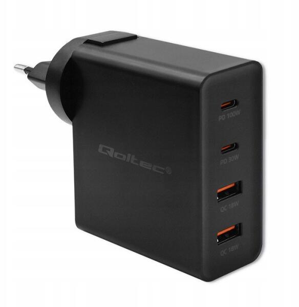 Qoltec Akkumulátortöltő GaN Power Pro 2xUSB-C 2xUSB 130W 5-20V 1.5-5A (52383)