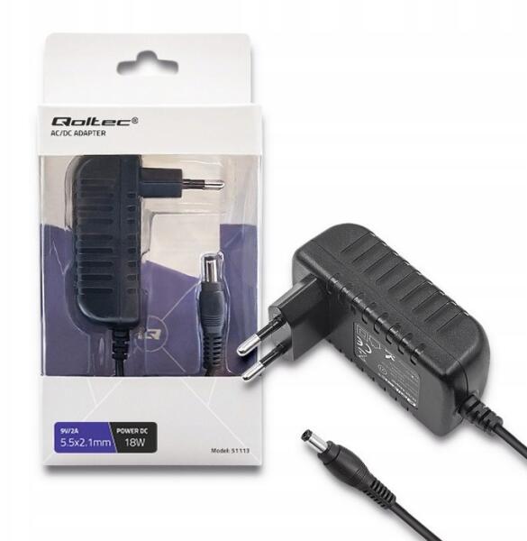 Qoltec Dugaszolható tápegység 18W 9V 2A 5.5*2.1 (51113.18W)