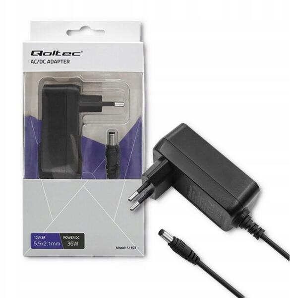 Qoltec Dugós Tápegység 36W 12V 3A 5.5*2.1 (51103.36W)