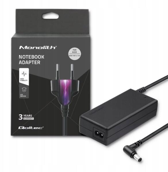 Qoltec Tápegység Acer 90W 19V 4.74A 5.5*2.5 +tápkábel (50096.90W)