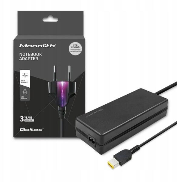 Qoltec Tápegység Lenovo 135W 20V 6.75A Slim tip+pin +tápkábel (51031)